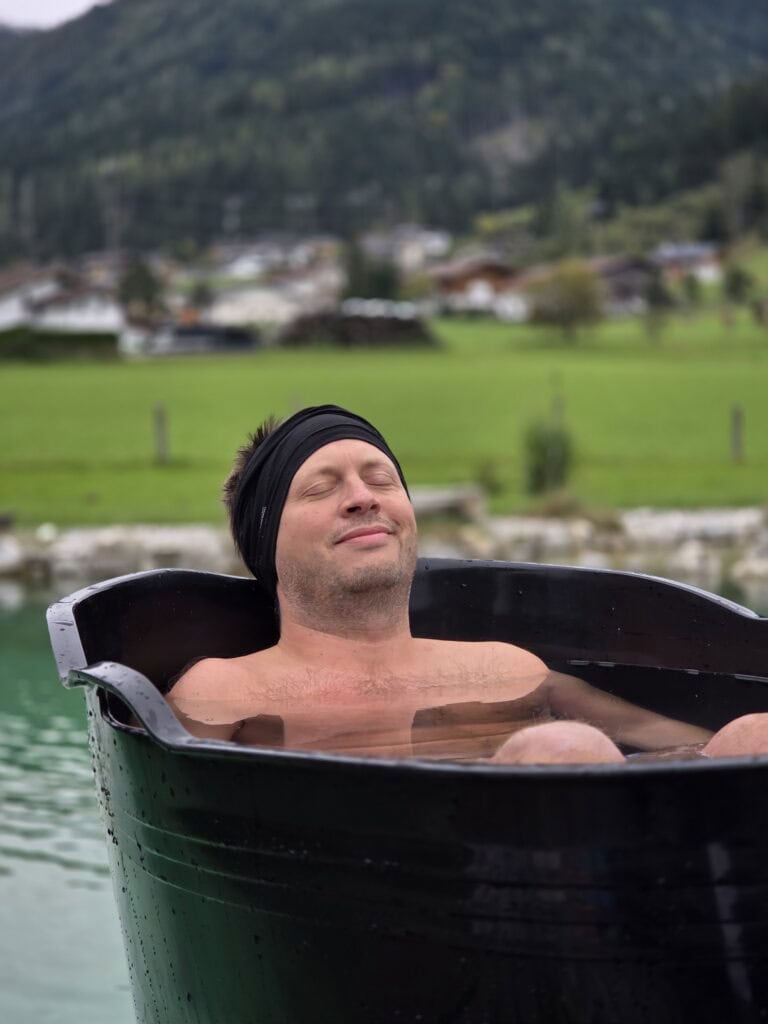 Das Eisbad bringt uns in eine unmittelbare Klarheit. Es geht nicht darum, den Stress, die Kälte auszuhalten, es geht darum, dass wir lernen in den Stress hinein zu entspannen und der Kälte in innerer Ruhe zu begegnen. Damit aktivieren wir unsere Fähigkeit, jeglichem Stress, jeglichen Herausforderungen in Ruhe zu begegnen.